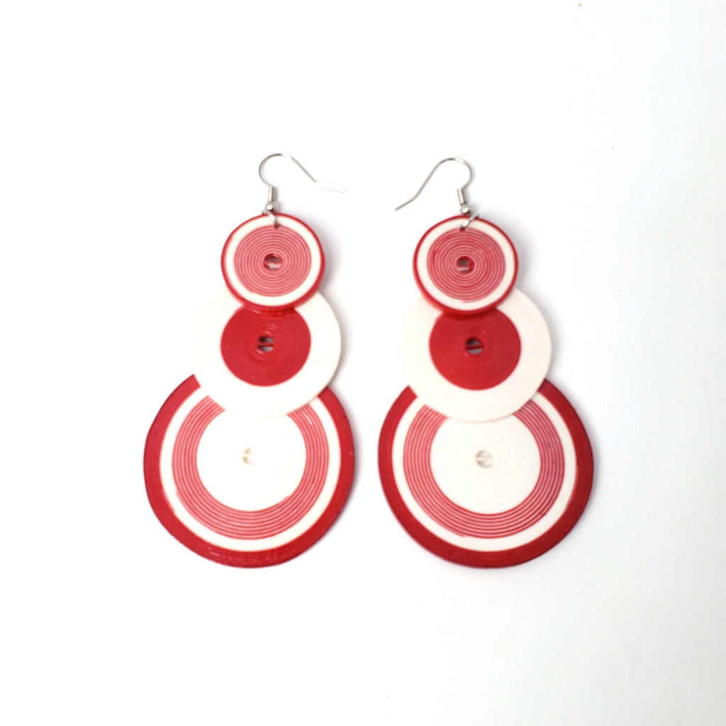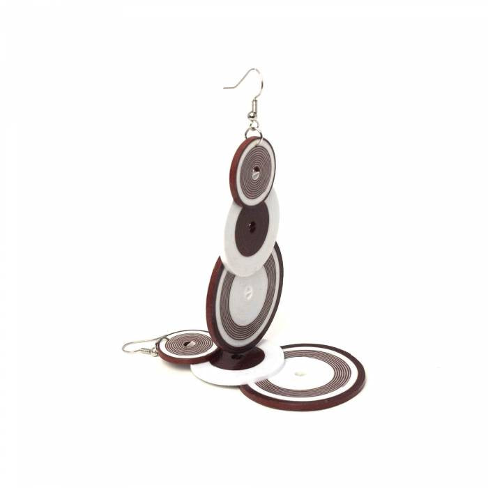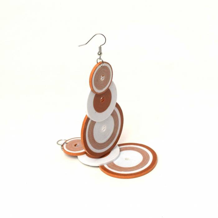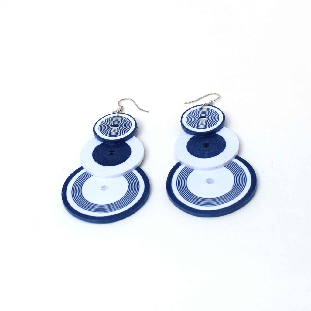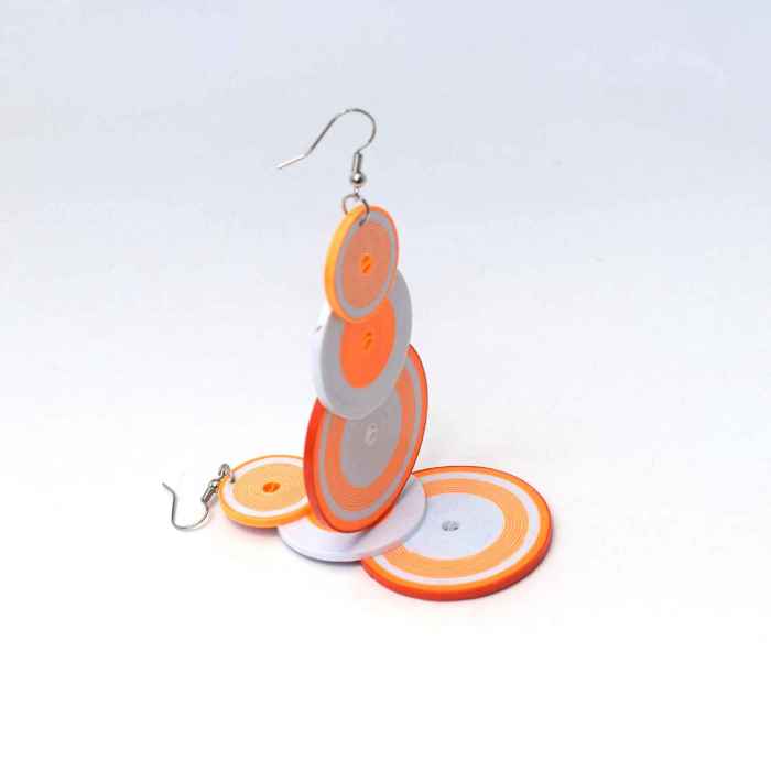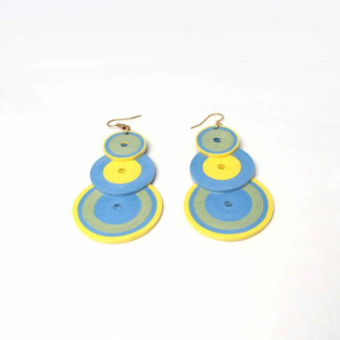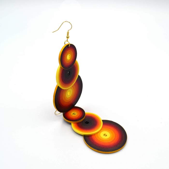 The necklace pendant has 5 discs which share the same dimensions with the large-sized earring pendant.