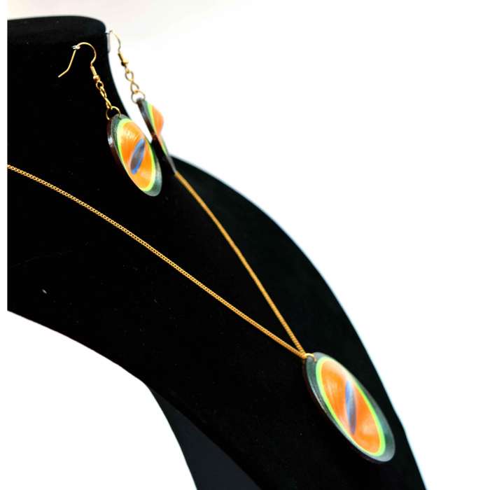Manufacturing: Handmade paper quill necklace and earring pendants.
